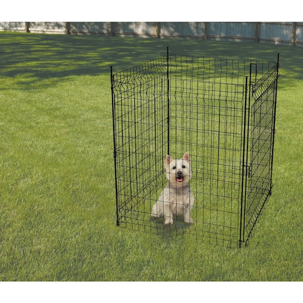 Multi purpose fence panel. Ideal to be used to create crate bins pet runs garden enclosures and more. 0.35-centimeter black powder-coated steel construction. Hardware not included.
