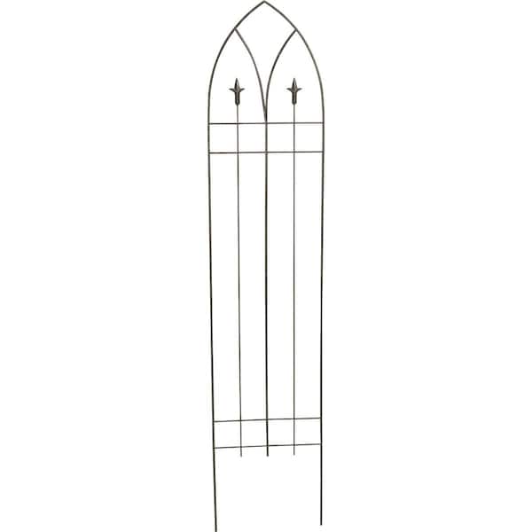 Decorative garden trellis. Durable metal construction featuring leaves in a hammertone bronze finish. The arch is 7.45mm gauge steel the rest of trellis is 5mm. Dimensions: 15 In. W. x 67 In. H.