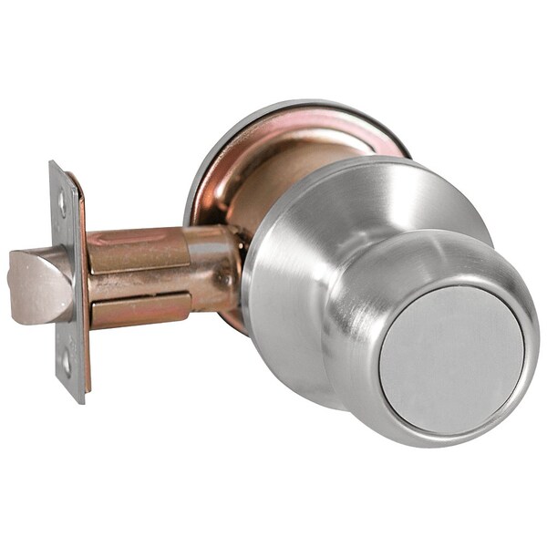 Grade 2 Exit Cylindrical Lock, Round Knob, Non-Keyed, Satin Chrome Finish, Non-handed (Discontinued)