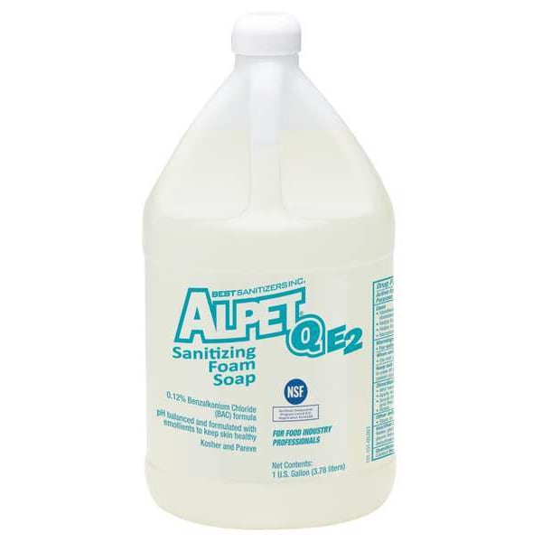 Hand Soap, Color Clear, Form Foam, Product Type Hand Soap, Series Alpet Q E2, Container Size 1 gal, Container Type Jug, Fragrance Fragrance Free, Hygiene Properties Sanitizing, Formula 0.12 Percent Benzalkonium Chloride, Includes Grit No, Number of Pumps Included Not Applicable, Manufacturer Dispenser Part Number MD10003, MD10110, MD10201, Requires Dispenser Yes, Includes Not Applicable, Standards Not Applicable, Application Hand Cleansing, NSF Rating E2, Removes Germs