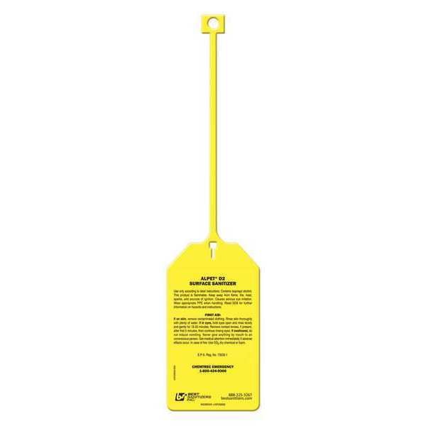 Safety Tag, Vertical Rectangle, Number of Printed Sides 2, English, Sign Format ANSI/OSHA Format, Sign Legend Alpet D2 Surface Sanitizer Use Only According to Label Instructions. Contains Isopropyl Alcohol. This Product is A Flammable. Keep Away From Flam, Fire, Heat, Sparks, and Sources of Ignition. Causes Serious Eye Irritation. Wear Appropriate PPE When Handling. Read SDS for Further In, Sign Legend Background Color Yellow, Sign Legend Style Text