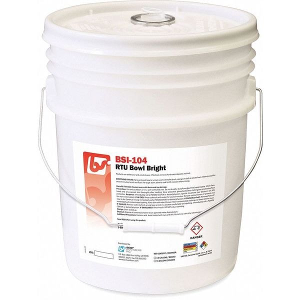 Toilet Bowl Cleaner, Toilet Bowl Cleaner, Primary Chemical Alcohol, Surfaces for Use On Toilet Bowls, Urinals, Container Type Bucket, Container Size 5 gal, Fragrance Unscented, Ready to Use/Concentrated Ready to Use, Recommended Dilution Ready to Use, Cleaner Form Liquid, Color Clear, Product Series BSI Industrial Cleaner Series, VOC Content 0 Percent, pH Level 1, pH Value Acidic, Nonflammable Yes, NSF Rating Not Rated, Rinse Required Yes, OSHA