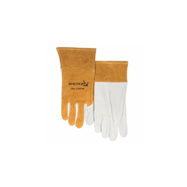 115-TIG Split Cowhide/Goatskin Palm Welding Gloves, Medium, Buck Tan/White