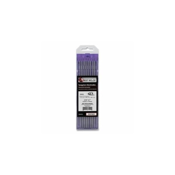 E3 Tungsten Electrode, 3/32 in dia x 7 in L, 10 PK
