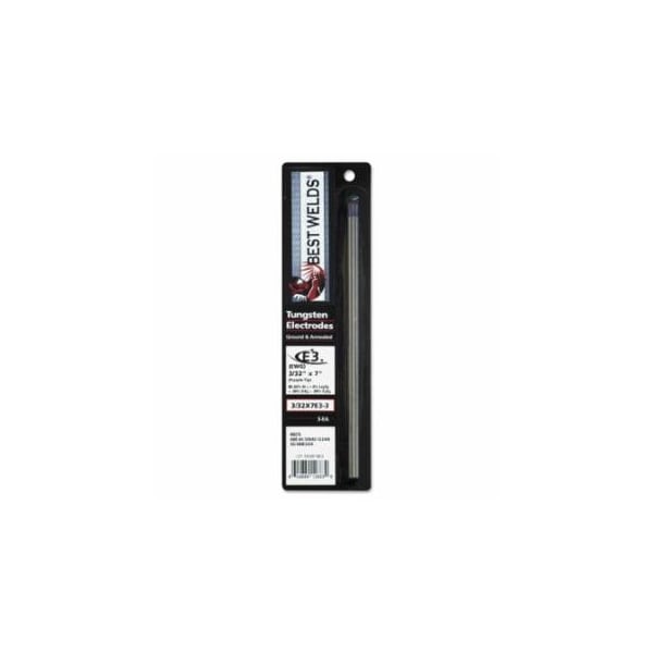 E3 Tungsten Electrode, 3/32 in dia x 7 in L, 3 PK