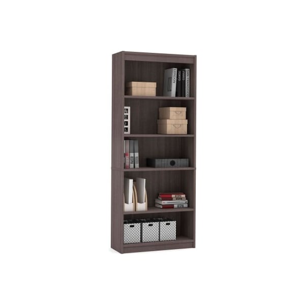 Bestar bookcase 29-1/2"w x 11-5/8"d x 72"h 5 shelf bark gray complete your work environment with the accessories that suits your needs. Features 5 shelves, three of which are adjustable.