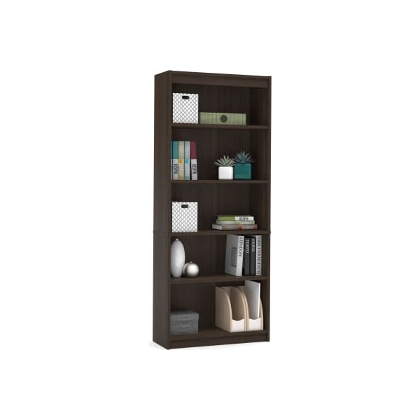Bestar bookcase 29-1/2"w x 11-5/8"d x 72"h 5 shelf dark chocolate complete your work environment with the accessories that suits your needs. Features 5 shelves, three of which are adjustable.
