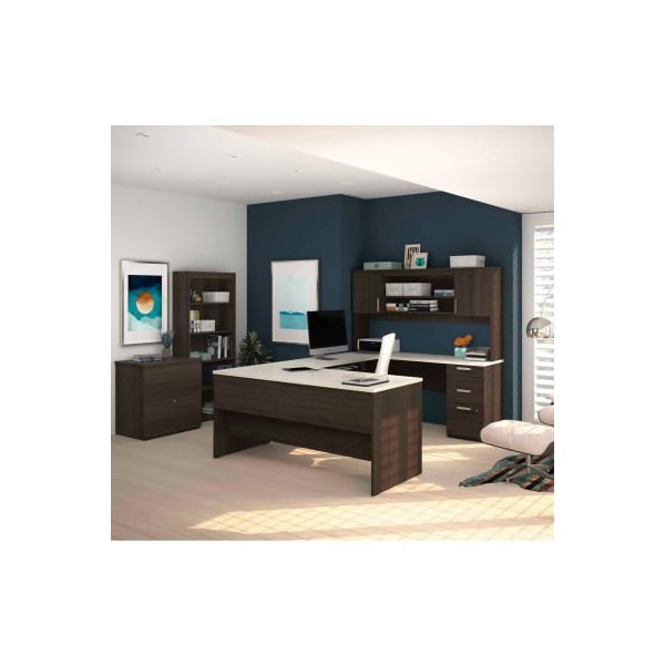 Bestar U-Shaped Desk W/ Lateral File and Bookcase - Dark/White Chocolate - Ridgeley Series