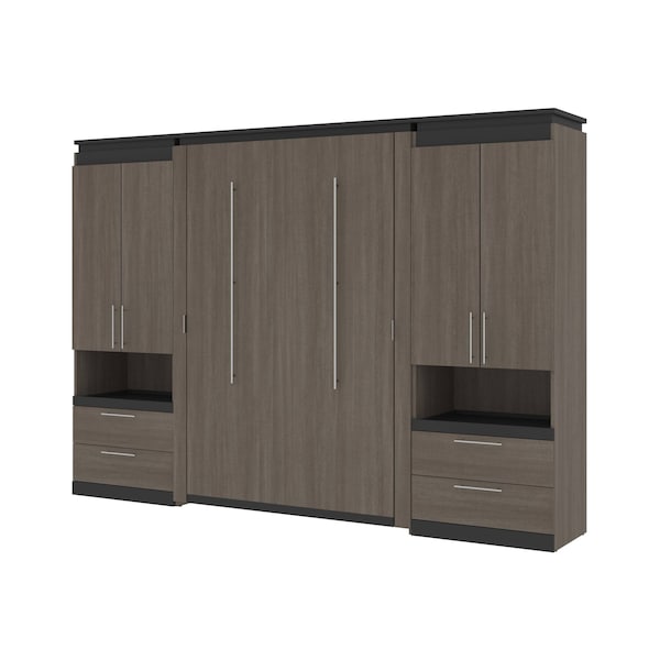 Orion 118W Full Murphy Bed and 2 Storage Cabinets with Pull-Out Shelves (119W), Bark Gray & Graphite