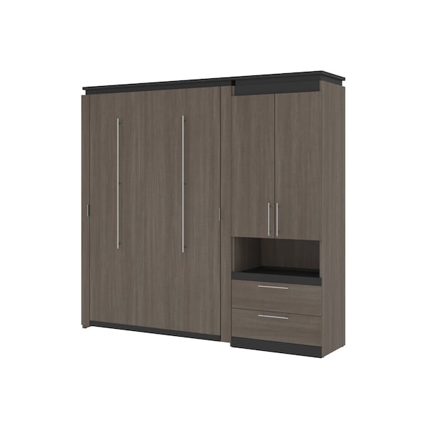 Orion Full Murphy Bed and Storage Cabinet with Pull-Out Shelf (89W), Bark Gray & Graphite