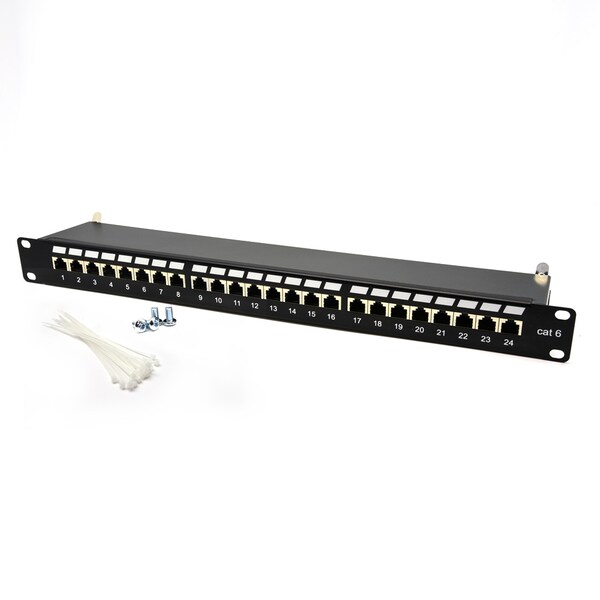 This 19 inch rackmount patch panel allows you to organize your cable runs with a clean slate to sort, label and route everything in your network patch panels. Supports T568A & B wiring.