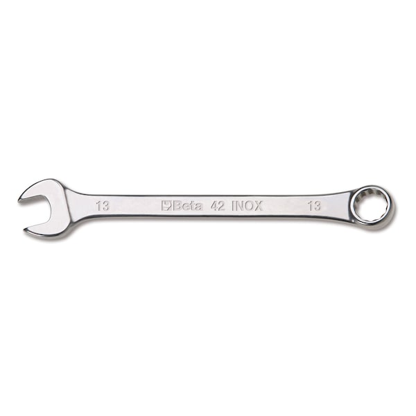 The Beta 42INOX series of stainless steel combination wrenches feature a 15 degree offset open end and 15 degree offset 12-point box end allowing for a greater range of movement and leverage in tight spaces. Made with AISI 420 Stainless Steel to prevent corrosion and rust, these combination wrenches are durable for any application, and especially ideal for use in the food industry and clean rooms. The length of these combination wrenches are longer than most competitors allowing for greater torque to be obtained.