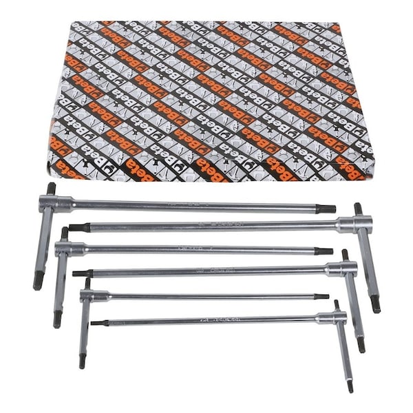 951AS/S6X, 6 piece SAE, Sliding T-handle wrench set, 3 male hex ends, chrome plated with black phosphate ends. 1/8", 3/16", 7/32", 1/4", 5/16", 3/8" UNI 6742 DIN3112
