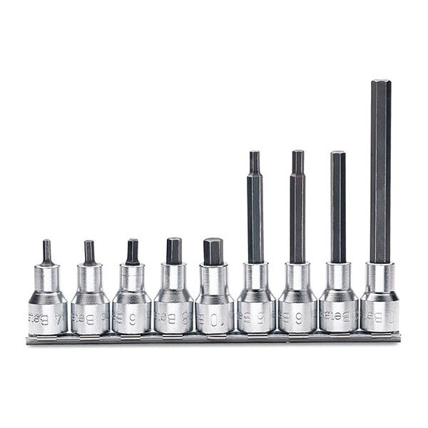 (5) 1/2" Socket Drivers For Hexagon Screws Of 58mm Length: 4mm,5mm,6mm,8mm,10mm; (3) 1/2" Socket Drivers For Hexagon Screws Of 100mm Length: 5Lmm,6Lmm,8Lmm; (1) 1/2" Socket Drivers For Hexagon Screws Of 140mm Length: 10Lmm