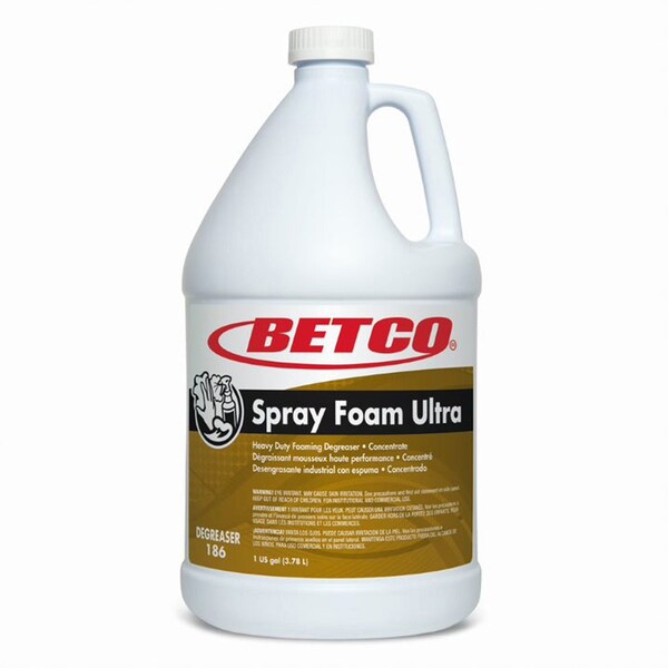 "Spray Foam Ultra is a heavy-duty, foaming degreaser for use in supermarkets, food-processing plants and other foodservice environments. It produces a thick foam that will maximize contact time and cling to vertical surfaces to quickly remove all types of animal fats grease, vegetable oil, blood and fatty soils. Continued use of Spray Foam Ultra will effectively remove old film residues in food prep areas. This degreaser does not contain caustic or chlorine, reducing physical and chemical hazards for employees. It is noncorrosive to equipment and leaves no residue. Concentrated, free-rinsing formula offers a dilution ratio of 1/2 oz. per gallon."