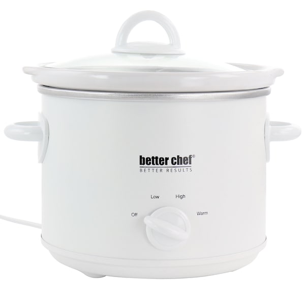 Make the most of your time with the Better Chef 3 Quart Round Slow Cooker with Removable Stoneware Crock in White and its convenient controlled heating. This crock's large round shaped stone wall container keeps all the flavor together and can be easily removed from the slow cooker to the dinner table or to the refrigerator afterwards. The glass lid and stoneware container are dishwasher for maximum convenience. Get your guest drooling with savory meals from this dazzling cooker tonight.