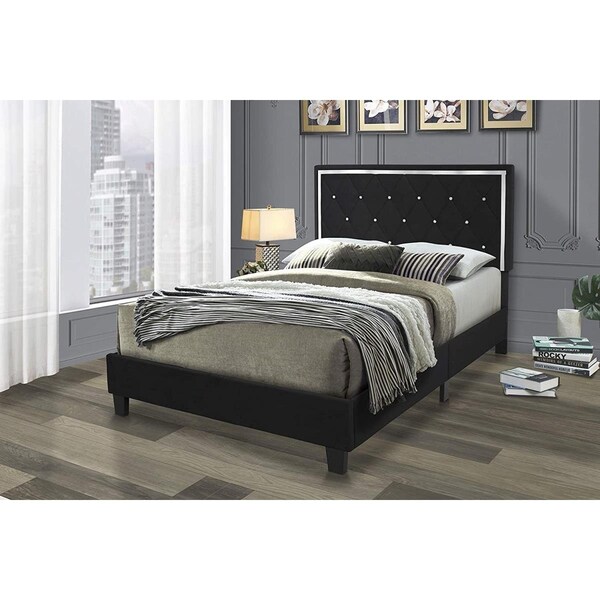 Monica Velvet Upholstered King Size Platform Bed, Black