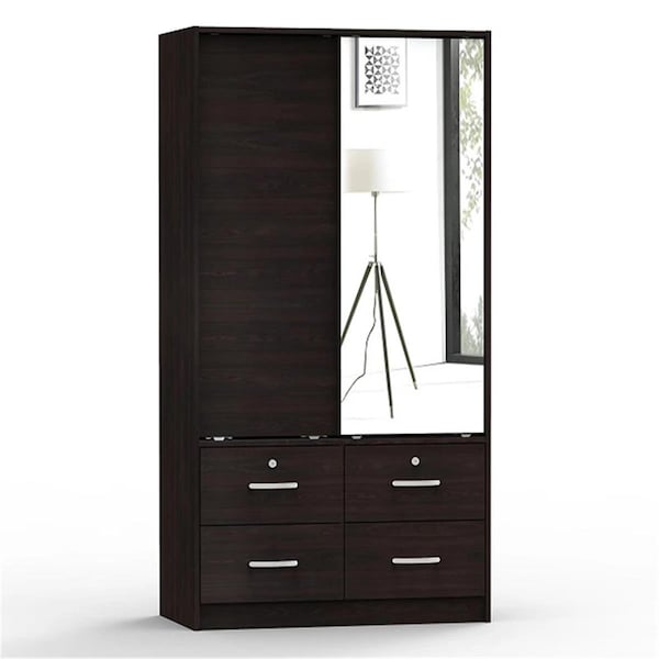 Sarah Double Sliding Door Armoire with Mirror, Tobacco