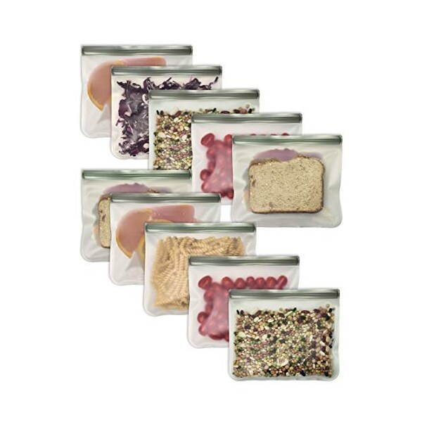 Reusable Sandwich Food Bags, Double Zip Lock Closure, 10PK