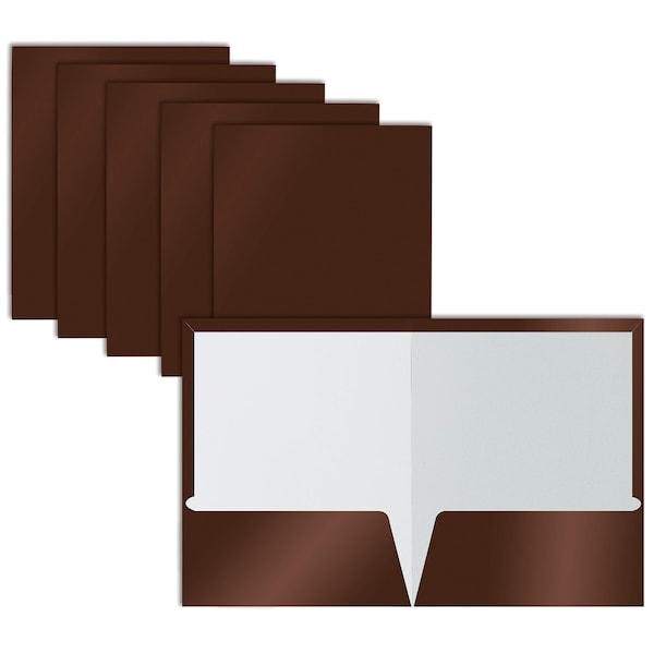 2 Pocket Glossy Laminated Paper Folders Portfolio Letter Size, Brown, 25PK