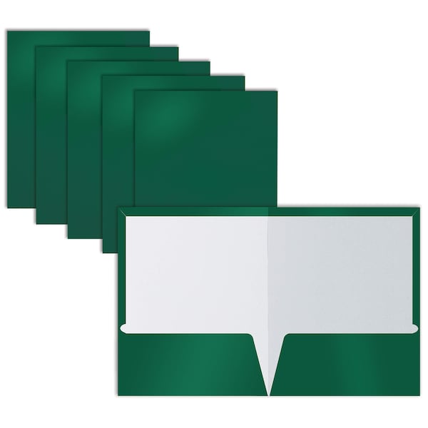 2 Pocket Glossy Laminated Paper Folders Portfolio Letter Size, Dark Green, 25PK