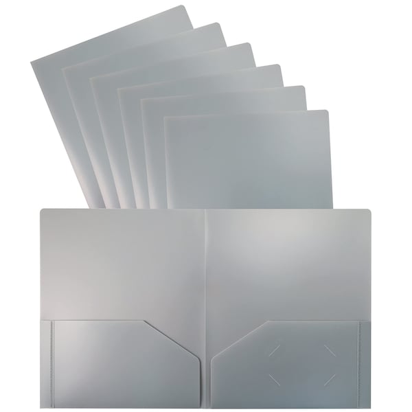 2 Pocket Heavyweight Plastic Folder Portfolio, Letter Size, Gray, 24PK