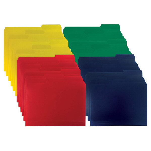 File Folders, Heavyweight Poly, 1/3 Cut, Top Tab, Letter Size, Assorted Colors, 24PK