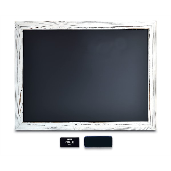 Magnetic Wall Chalkboard Sign, 18in. x 24in. Rustic Wood Frame, Includes Chalk and Eraser, Whitewash