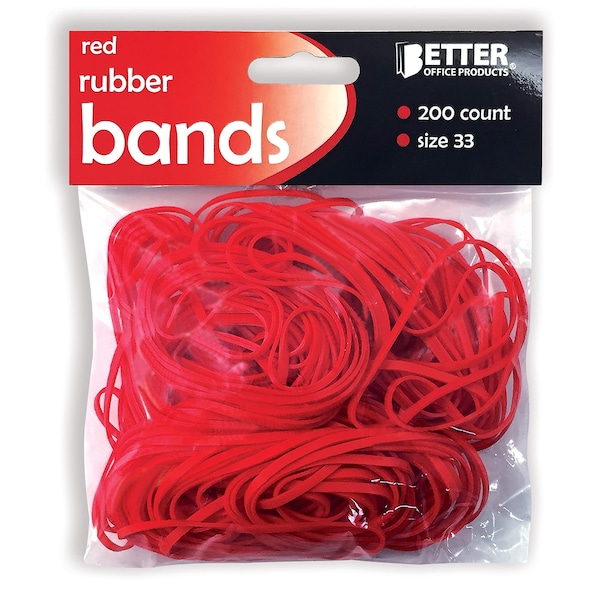 200 Red Rubber Bands, by Better Office Products, Size 33, 200/Bag, Bright Red Rubber Bands