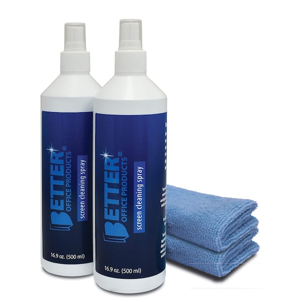Screen Cleaner Spray Kit/2 Spray Bottles Each 16.9 Oz 2 Ex-Large Microfiber Cleaning Towels, 2PK