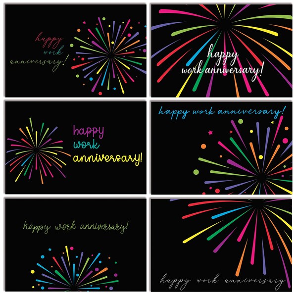 Work Anniversary Cards W/Envelopes, 4in. x 6in. 6 Fireworks Cover Designs, 36PK
