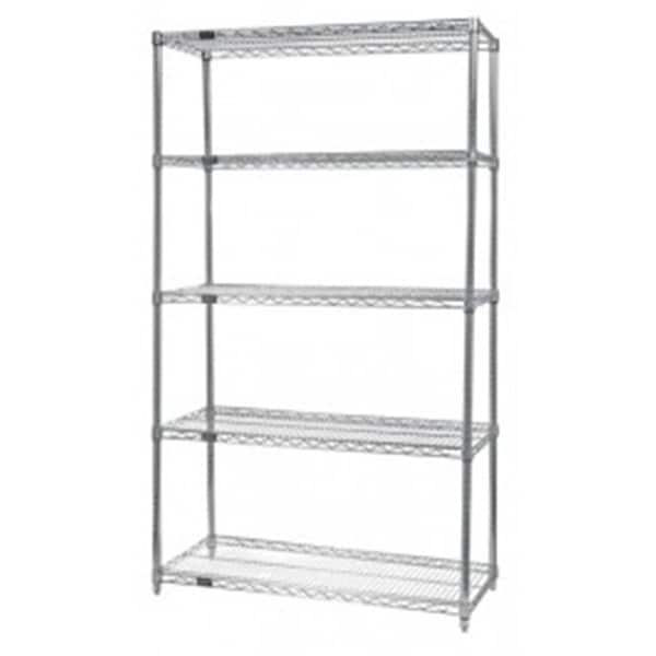 This chrome wire shelving starter kit is made up of four chrome posts and five chrome shelves. These wire shelving units are perfect in a dry storage environment. Additional shelves may be purchased and a caster kit can be purchased to make these units mobile. Features -Load Capacity - 800 lbs. -Outer Dimension - 12 x 48 x 86 in.
