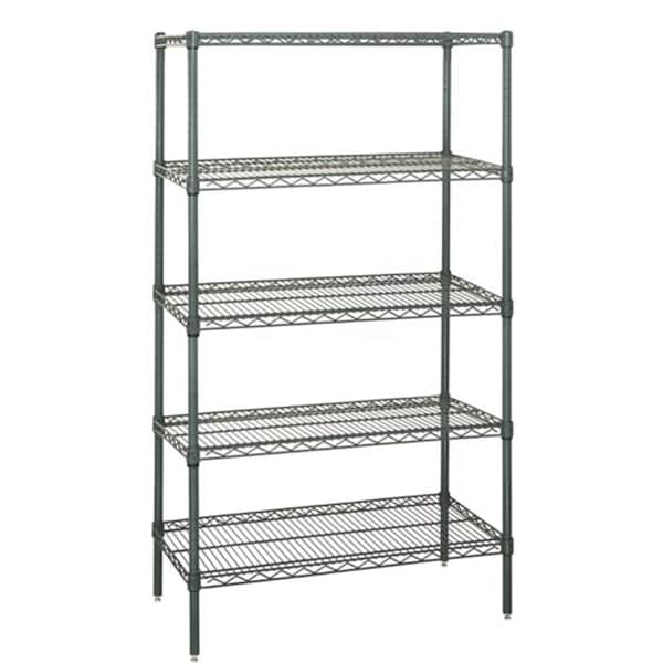 This Proform wire shelving starter unit has a green epoxy coated finish that is electrostatically applied to carbon steel that has been treated with an iron phosphate. This wire shelving style is ideally suited for wet or moist environments as the shelving finish contains an protective agent that will not allow the build up of bacteria. Features -Finish Proform -Load - 800 lbs. -Outer Dimension - 18 x 42 x 74 in.