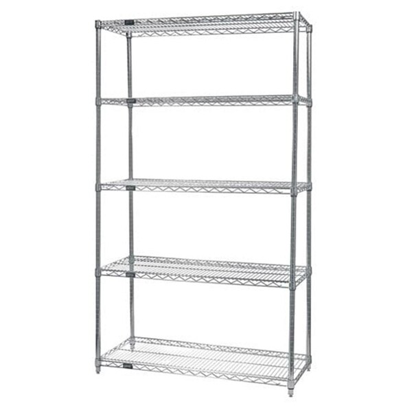 Starter Kits come complete with 4 posts and 5 wire shelves. Wire Shelves are all welded construction with additional wire trussing for high strength characteristics. Wire allows air to circulate and light to penetrate for increased product visibility and minimal dirt accumulation. Split conical sleeve adaptors secure shelf corner to post. Numbered grooved posts on 1 in. increments for quick assembly. No tools required for assembly. Quantum Stainless steel wire shelving is the ultimate storage unit in areas where there is a rust or corrosion concern. Made from 304 grade stainless with an electro polish finish these units are ideal for laboratories Health Care and Food Service applications. Features -Finish - Stainless -Load - 600 lbs. -Outer Dimension - 21 x 60 x 54 in.