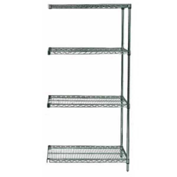 This proform wire shelving add-on unit has a green epoxy coated finish that is electrostatically applied to carbon steel that has been treated with an iron phosphate. Features -This wire shelving style is ideally suited for wet or moist environments as the shelving finish contains an protective agent that will not allow the build up of bacteria. -Finish - Proform. -Outer Dimension - 18 x 42 x 74 in. -Load - 800 lbs.