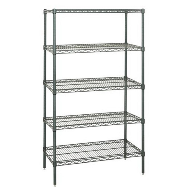 Features -This Proform wire shelving starter unit has a green epoxy coated finish that is electrostatically applied to carbon steel that has been treated with an iron phosphate. -This wire shelving style is ideally suited for wet or moist environments -The shelving finish contains an protective agent that will not allow the build up of bacteria. -5-Shelf Starter -Dimension - 30 x 42 x 86 in.
