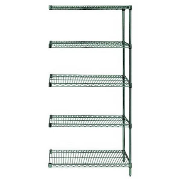 This Proform wire shelving add-on unit has a green epoxy coated finish that is electrostatically applied to carbon steel that has been treated with an iron phosphate. This wire shelving style is ideally suited for wet or moist environments as the shelving finish contains an protective agent that will not allow the build up of bacteria. Features -Load lbs. - 800 -Out Dim. - 24 x 36 x 86 in. -Finish - Proform