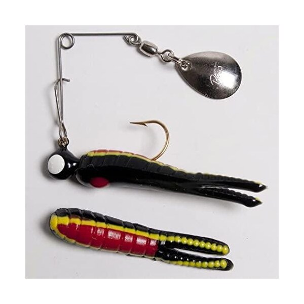 Hand poured custom decorated colors as original Gold hooks Original style head with barb to hold lure on hook with large painted eyes Lure attached to spinner High quality spinner An Exxtra Bait Packed in Each Bag For Super Value 1 per pack Betts 021ST38N 042621150825 Betts 021ST38N 042621150825