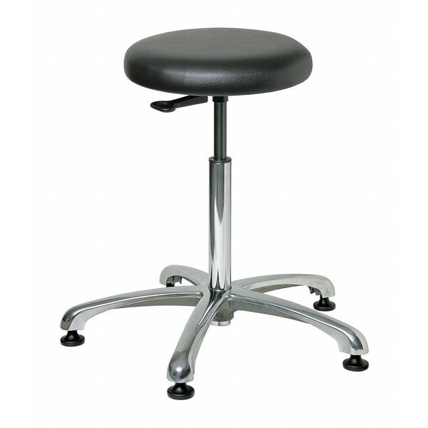 Cleanroom Pneumatic Stool, Weight Capacity 300 lb, Seat Height Range 21 1/2 in to 31 1/2 in, Seat Depth 15 in, Seat Width 15 in, Color Black, Material Vinyl, Base 5-Star Polished Aluminum, Features Class 10, Includes (5) Mushroom Glides, Partially Assembled, Standards ANSI/BIFMA, CAL 117