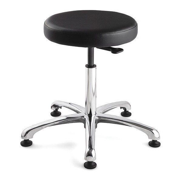 Cleanroom Pneumatic Stool, Weight Capacity 300 lb, Seat Height Range 21 1/2 in to 31 1/2 in, Seat Depth 16 in, Seat Width 16 in, Color Black, Material Vinyl, Base 5-Star Polished Aluminum, Features Upholstered Seat, Partially Assembled, Standards ANSI/BIFMA, ISO 5