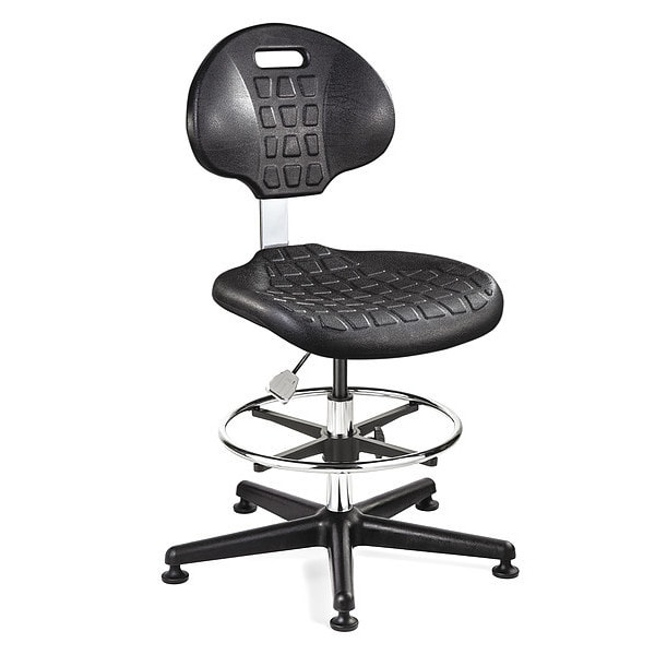 Cleanroom Task Chair, Weight Capacity 300 lb, Material Polyurethane, Seat Height Range 21 in to 31 in, Color Black, Cushion 1-1/2 in, Seat Width 18 1/2 in, Seat Depth 17 in, Seat Tilt Backward Not Applicable, Seat Tilt Forward Not Applicable, Back Height 12 1/2 in, Back Width 16 1/2 in, Base Five-Star Black Nylon, Back Tilt Backward Not Applicable, Back Tilt Forward Not Applicable, For Workbench Ht. 31 in to 41 in, Number of Casters 0, Number of Glides 5, Foot Support Yes, Partially Assembled