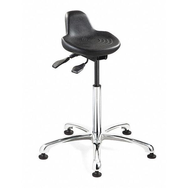 Sit/Stand Stool, Base Design 5-Star, Mobility Stationary, Backrest No, Base Color Silver, Built-In Tool Tray No, Includes Footring No, Maximum Seat Height 30 in, Minimum Seat Height 20 in, Overall Height 32 in, Seat Adjustment Type Pneumatic Lever, Seat Diameter 14 in, Seat Shape Round, Seat Width Not Applicable, ESD Conductive No, Assembled Unassembled, Includes Glides Yes, Load Capacity 300 lb, Puncture Resistant Yes, Seat Color Black