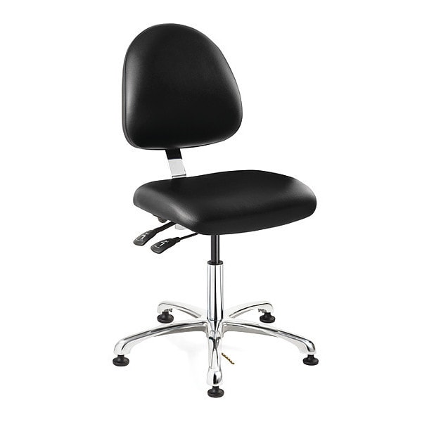 ESD Chair, Weight Capacity 300 lb, Material Vinyl (Antibacterial), Seat Height Range 17 in to 22 in, Color Black, Seat Width 20 in, Seat Depth 18 in, Seat Tilt Backward 6 Degrees , Seat Tilt Forward 6 Degrees , Back Height 16 in, Back Width 17 1/2 in, Base Five-Star Polished Aluminum, Back Tilt Backward 15 Degrees , Back Tilt Forward 11 Degrees , Number of Casters 0, Number of Glides 5, Foot Support Not Applicable, Partially Assembled, Standards ANSI/BIFMA, UL, Not Applicable