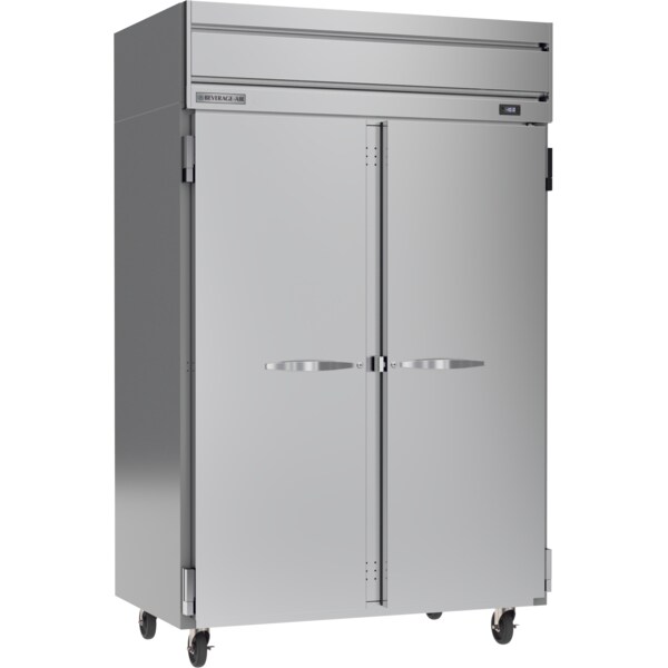 Reach-in Freezer, two-section, 52"W, 84-1/2" H, 49 cu. ft., (2) Solid hinged doors with Locks, (6) Adjustable Shelves, Electronic Control, LED Interior Lighting, Digital Display, Expansion Valve Technology, Automatic Defrost, Top Mounted Self Contained Refrigeration, Stainless Steel Front, Gray Painted Sides, Aluminum Interior, R290 Hydrocarbon Refrigerant, 3/4 HP, cULus, UL EPH Classified, UL-Sanitation.