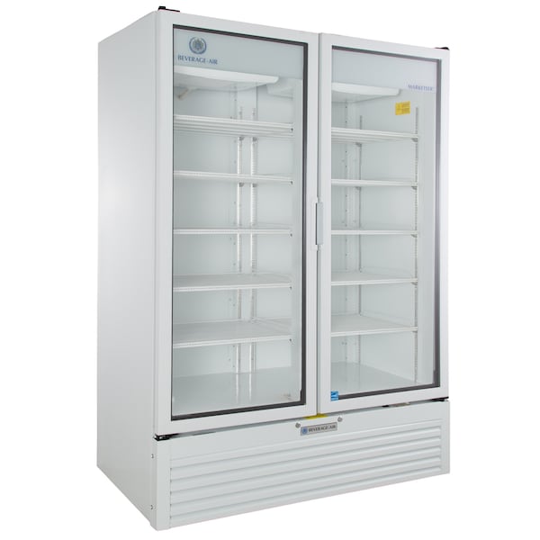 Refrigerated Merchandiser, Reach-in, Two Section, (2) Double Dane Hinged Glass Doors with Locks, 31.41 cu. ft. Capacity, Electronic Temperature Control, (10) Adjustable Wire Shelves, LED Interior Lighting, Self-closing Door with Recessed Pocket Door Handle, Bottom Mounted Refrigeration, White Interior & Exterior, R290 Hydrocarbon Refrigerant, 1/2 HP Compressor, ETL, cETLus, ENERGY STAR