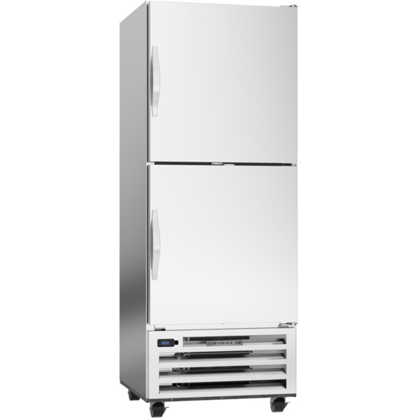 Reach-in Refrigerator, Single Section, 16.85 cu. ft., (2) Solid Hinged Half Doors, (5) Adjustable Shelves, LED Interior Lighting, Bottom Mounted Self Contained Refrigeration, Stainless Steel Exterior & Interior, 3" Casters, R290 Hydrocarbon Refrigerant, 1/4 HP Compressor, cULus, UL EPH Classified, UL-Sanitation