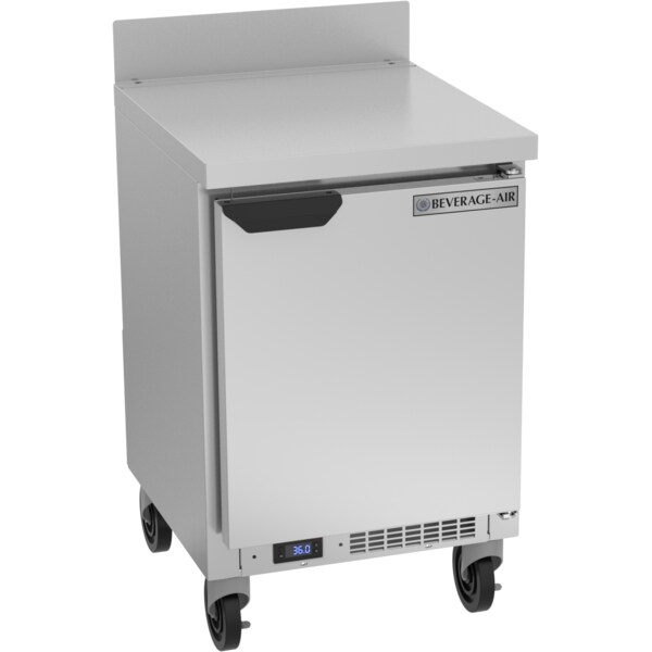 Refrigerator,Work Top Style, Shallow Depth, 115 V, One Section, 20" W, 36-1/8" H, 2.34 cu. ft., One solid Reversible Hinged Door, Two Wire Shelves, Stainless Steel Exterior Front, Sides & Door, Galvanized Steel Exterior Back and Bottom, Stainless Steel Top, Corrosion Resistant Aluminum Interior, 4" Removable Backsplash, R-290 Hydrocarbon Refrigerant, cULus, UL EPH, UL-Sanitation