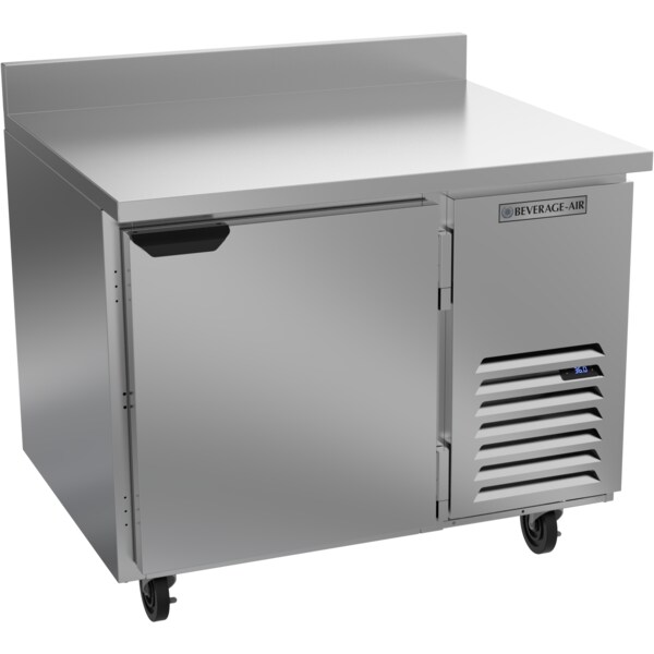 Worktop Refrigerator, One Ssection, 41"W, 7.94 cu. ft., (1) Solid door, Stainless Steel Front, (2) Shelves, 2-1/2" Thick Top & Sides, Aluminum Interior, 4" H Built-in Backsplash, Side Mounted Self Contained Refrigeration, R290 Hydrocarbon Refrigerant, 1/4 HP Compressor, cULus, UL EPH Classified, UL-Sanitation