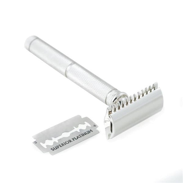 Bey-Berk International Chrome Plated Safety Razor with Diamond Cut Design Handle, Silver