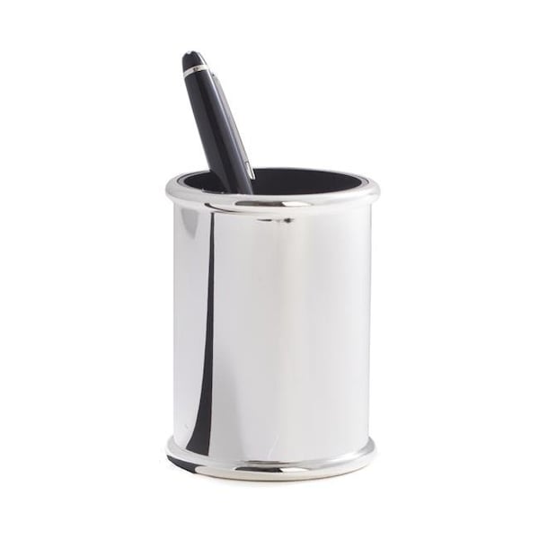 Bey-Berk International D595 Silver Plated Pen Cup with Black Abs Plastic Lining - Black